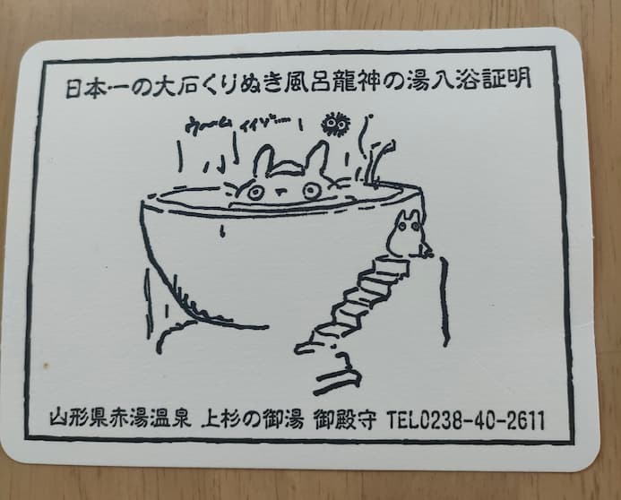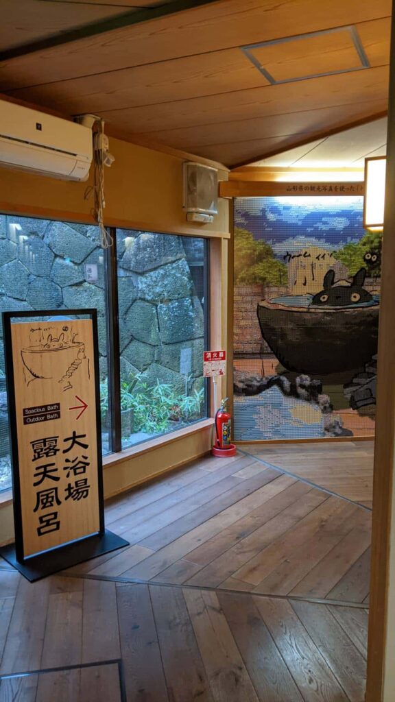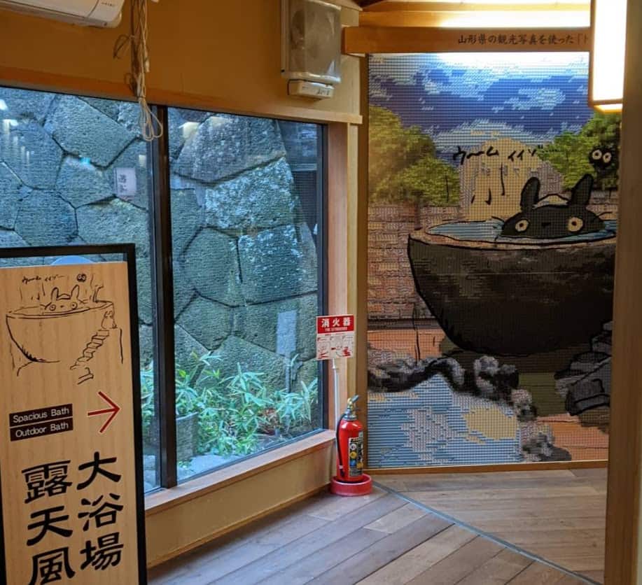宮崎駿監督が、この旅館を訪れた際 お風呂を大変気に入り トトロの絵を描いたらしいです。