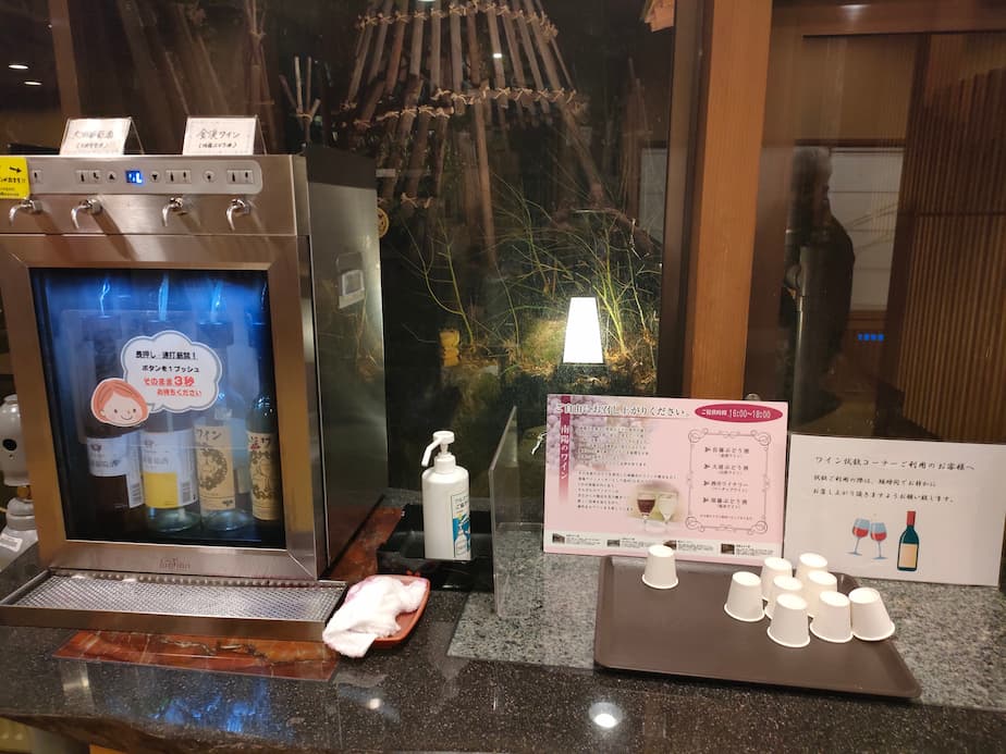湯上がり処で水を頂きましたが、ワインもね。