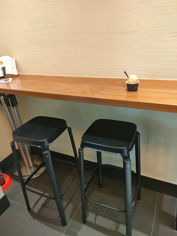 店内のここで、高い椅子に座って食べました。 ほんとおいし~い。美味しいわ! クレープも美味しそう
