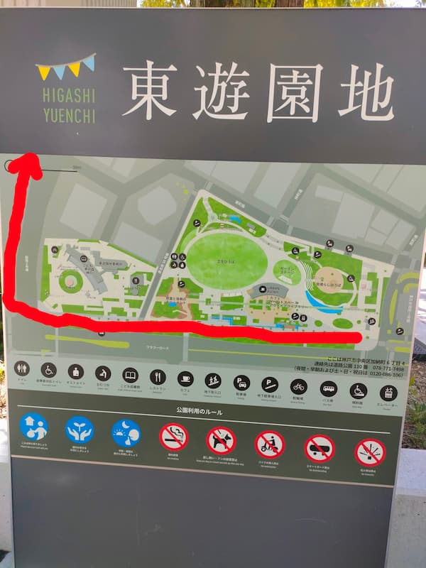 JR三ノ宮駅から南方面へ。 東遊園地を右手に見ながら進み