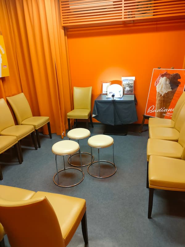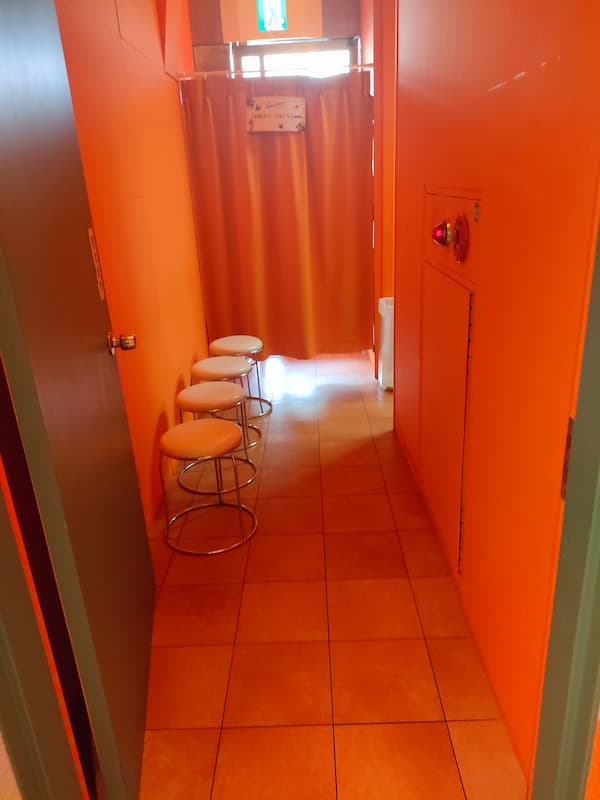 元はスタッフルームだったかもしれない、それをオレンジにきれいに改装したみたいな部屋で頂きました。