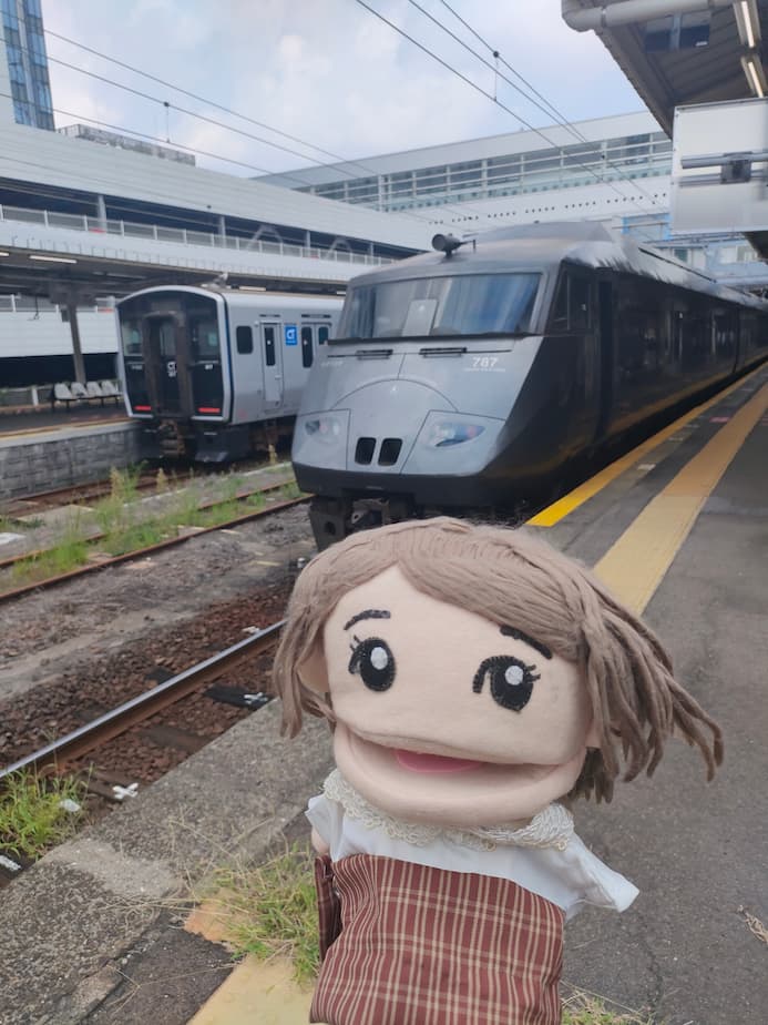 特急きりしまの顔は、人っぽいです。 到着まで50分の旅です。