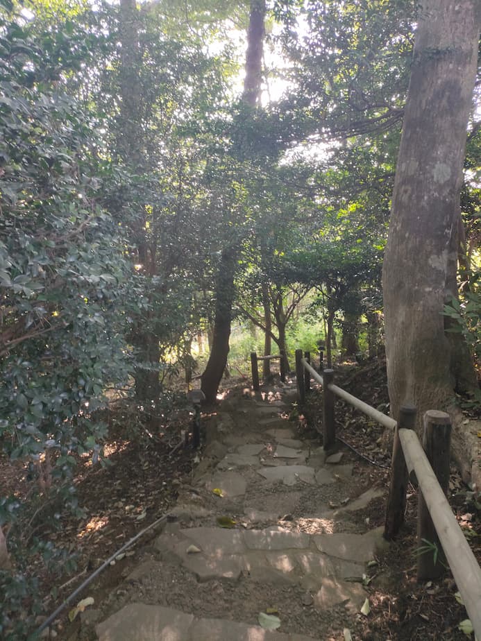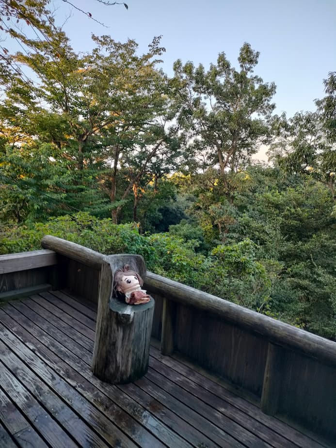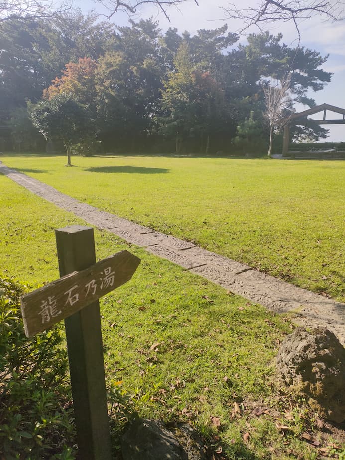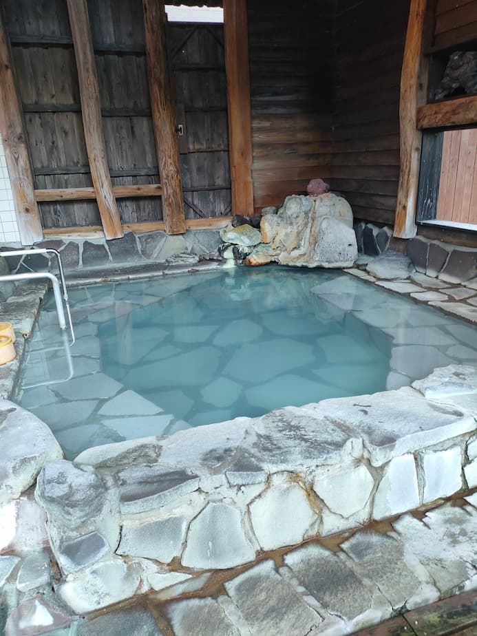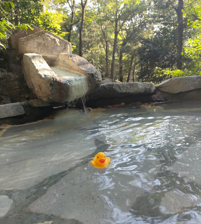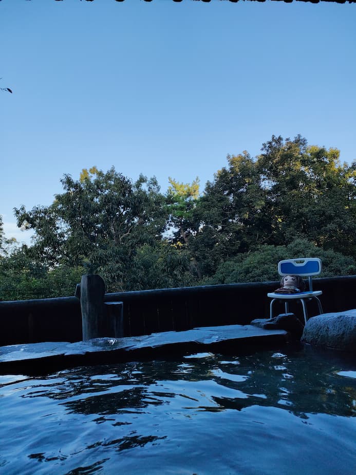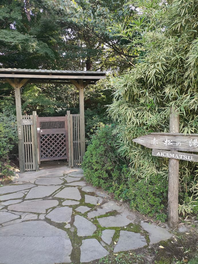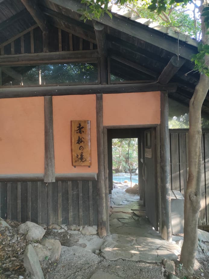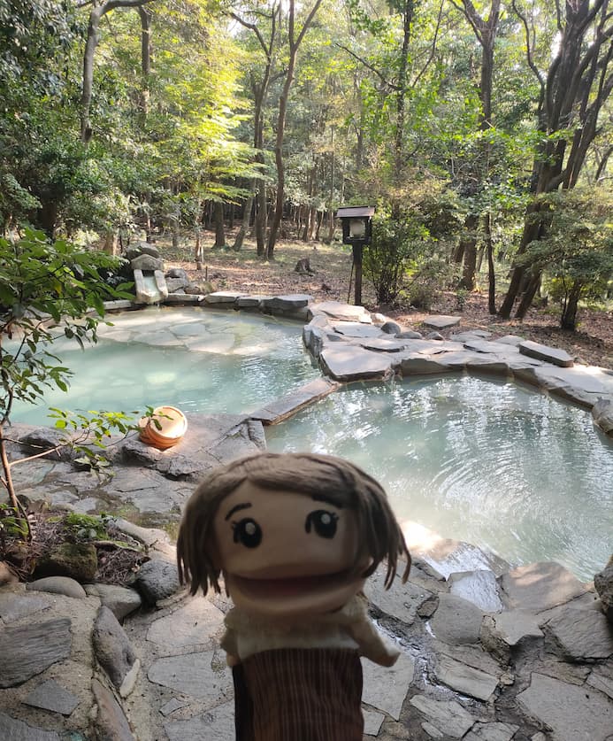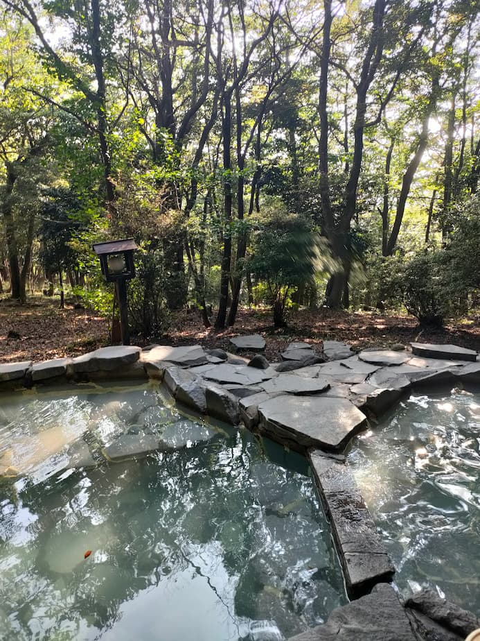 赤松林にある、屋根なし囲いなしの露天風呂。 野生の鹿が生息しているらしい。この時は鹿の姿は見えなかった。