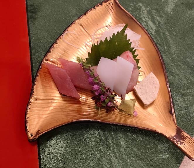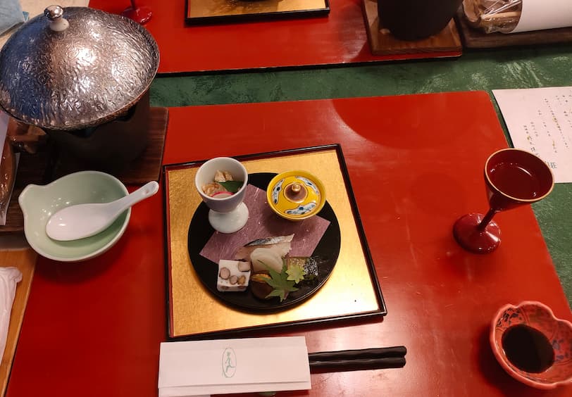 食前酒 旅行人山荘自家製梅酒 小鉢 檸檬豆腐 柿白和え