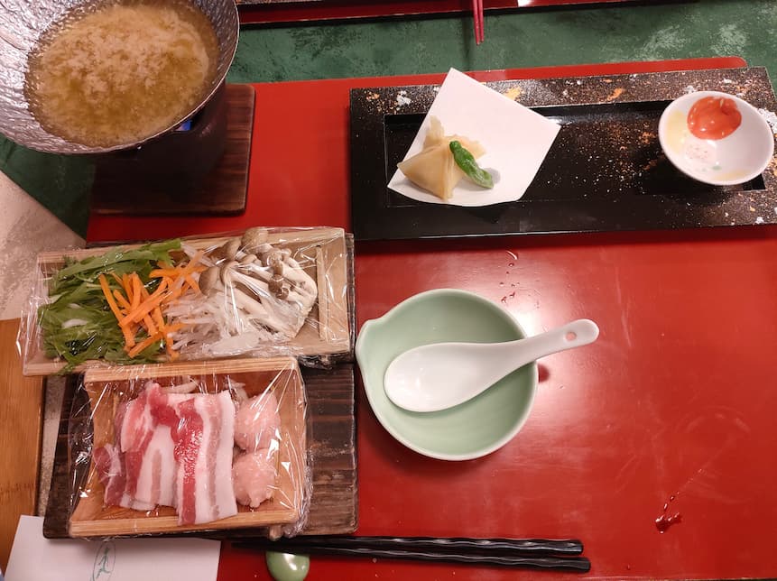 鍋 大隅鍋 白味噌仕立て 揚げ物 海老のかるかん包み揚げ