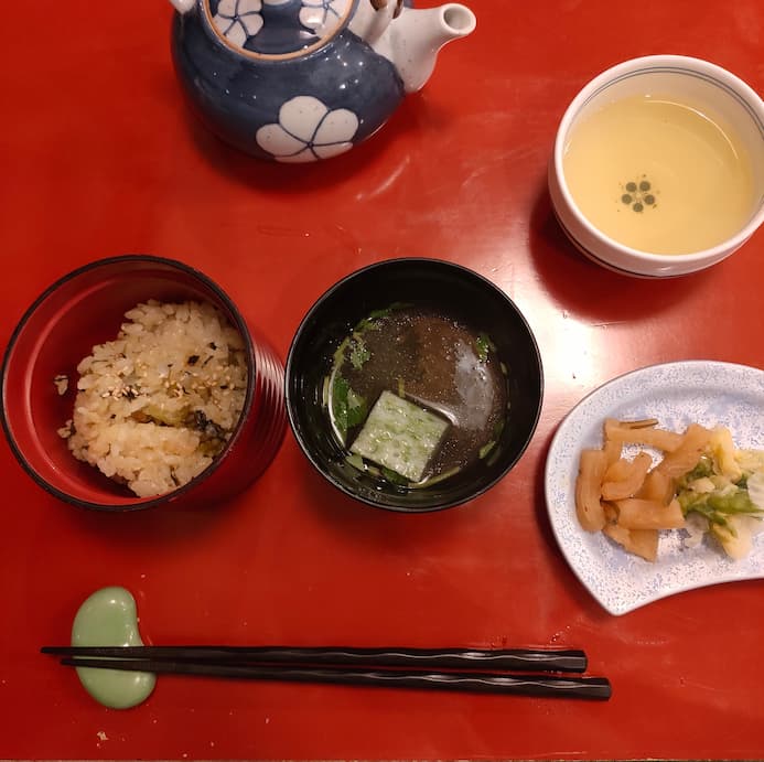 食事 鹿児島県産米日替り御飯 香の物 吸い物 青さ真丈 とろろ昆布 三つ葉