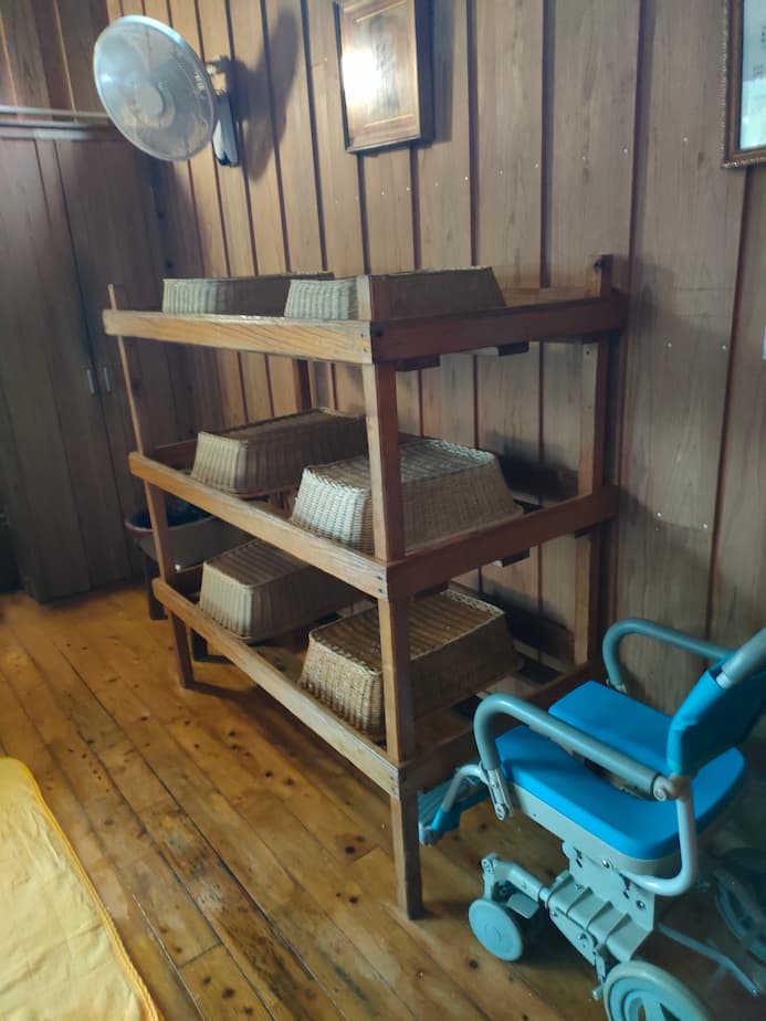 窓(木の枠)から木の枝が見えて、野鳥が止まる事もあるんだろうな・・・と思った。