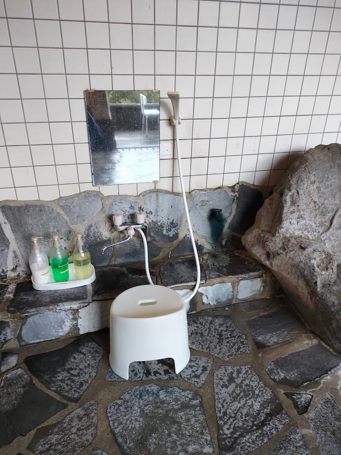 赤の○印に入りました。 丸尾温泉(単純泉)と硫黄泉の2種類楽しめます。