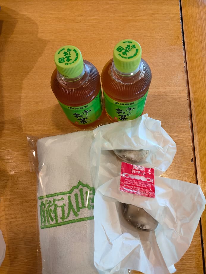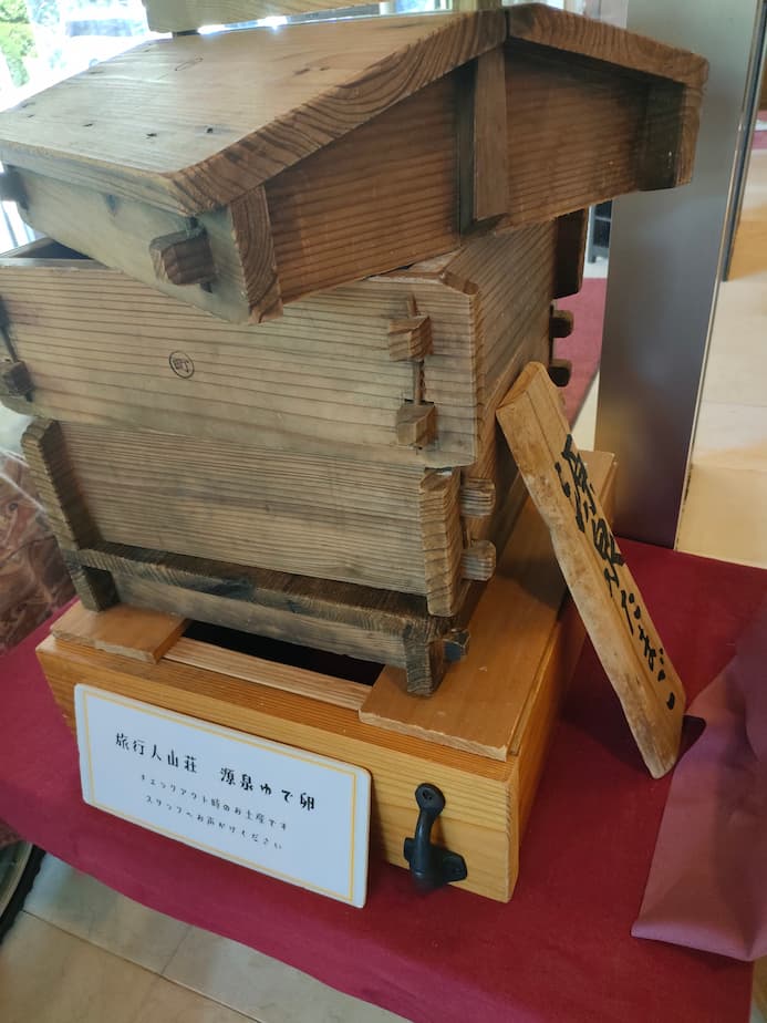 チェックアウトの時に、源泉ゆで卵とお茶とタオルを頂きました!!