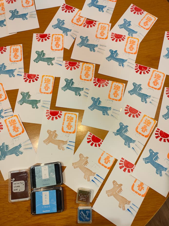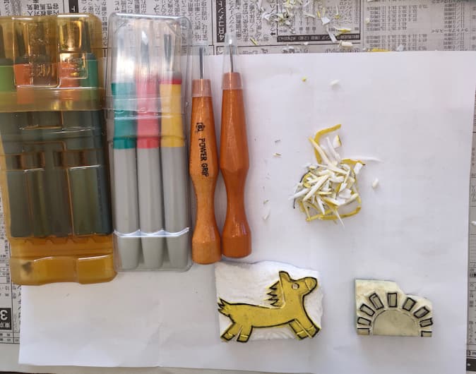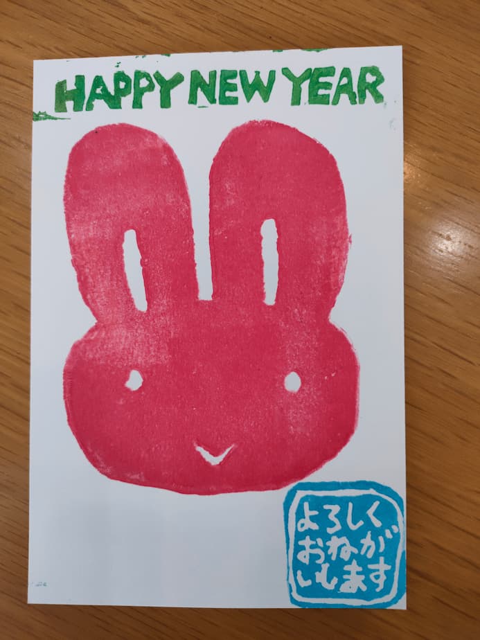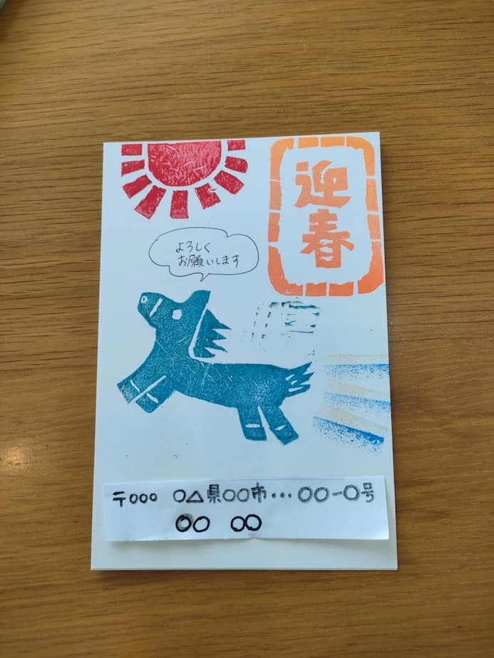 年賀状を出すのは、元々出す枚数が少ないのと、けしごむでスタンプを作るのが好きだからです。