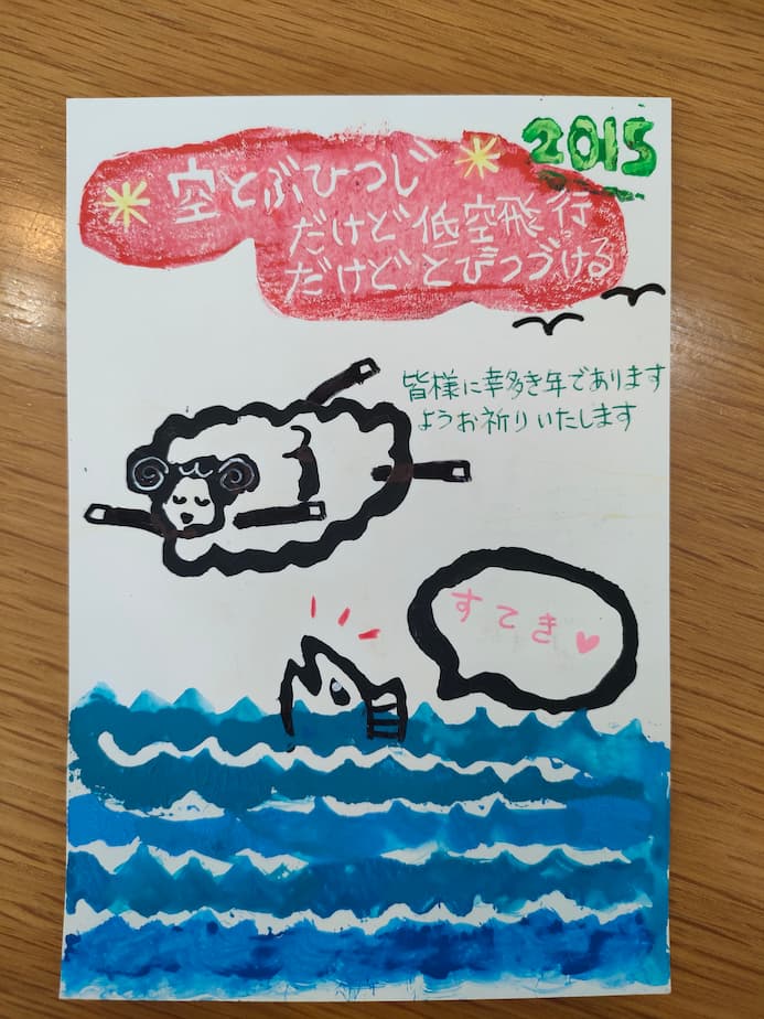 「*空とぶひつじ* だけど低空飛行 だけど とびつづける」とか書いて