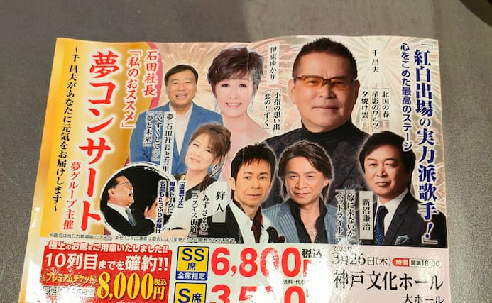 先日、友人のHちゃんに誘われて、石田社長「私のおススメ」夢コンサート(夢グループ主催)