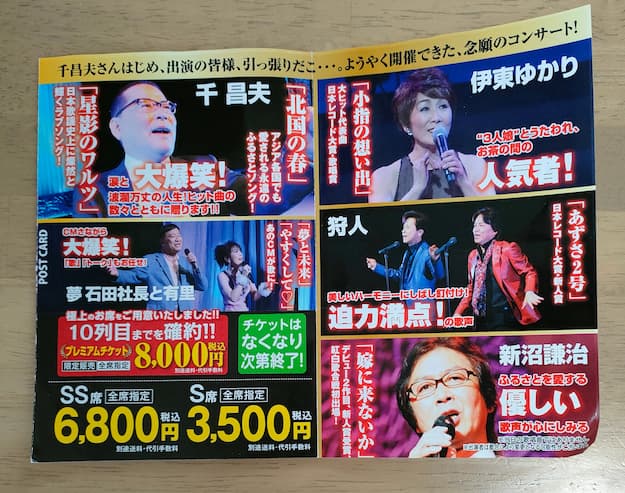 案内のはがきに「~千昌夫があなたに元気をお届けします~」とありますが、ほんとにその通りでした。