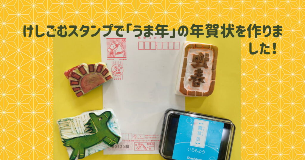 こんにちは パペットと鉄道旅をするのが好きなみーこです。来年(2026年)は午年。けしごむスタンプで年賀状を作りました。ここ何年か、年賀状じまいをする人が増えてき… -